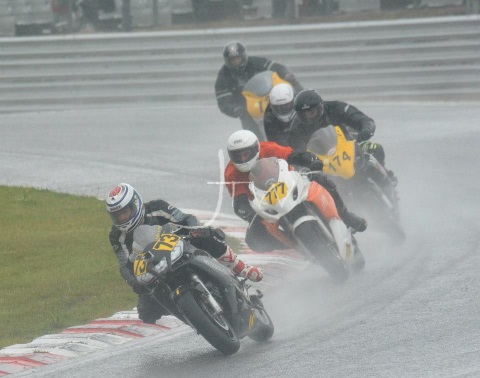 Sunday started out wet and windy. Even the caravan started leaking. We lined up on the grid for race three which I started in 27th. The race went well and I managed to stay upright for seven laps finishing in 18th with a fastest time of 2:00.888. There were 9 non finishers, all of them either crashing or suffering running problems. Unfortunately I was passed in the final corner by someone that wanted to end my race. I suffered a broken front brake lever but crossed the finish line. After that though I had no brake and ended the race in the gravel trap!
